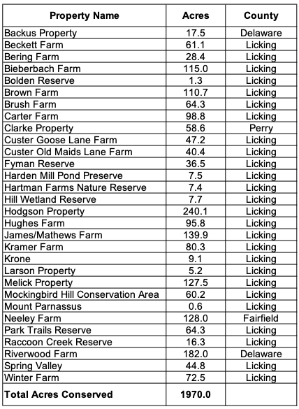 The Licking Land Trust protects over 1,800 acres of land through both conservation and agricultural Easements. See our current list of protected properties below (zoom in for a closer look).